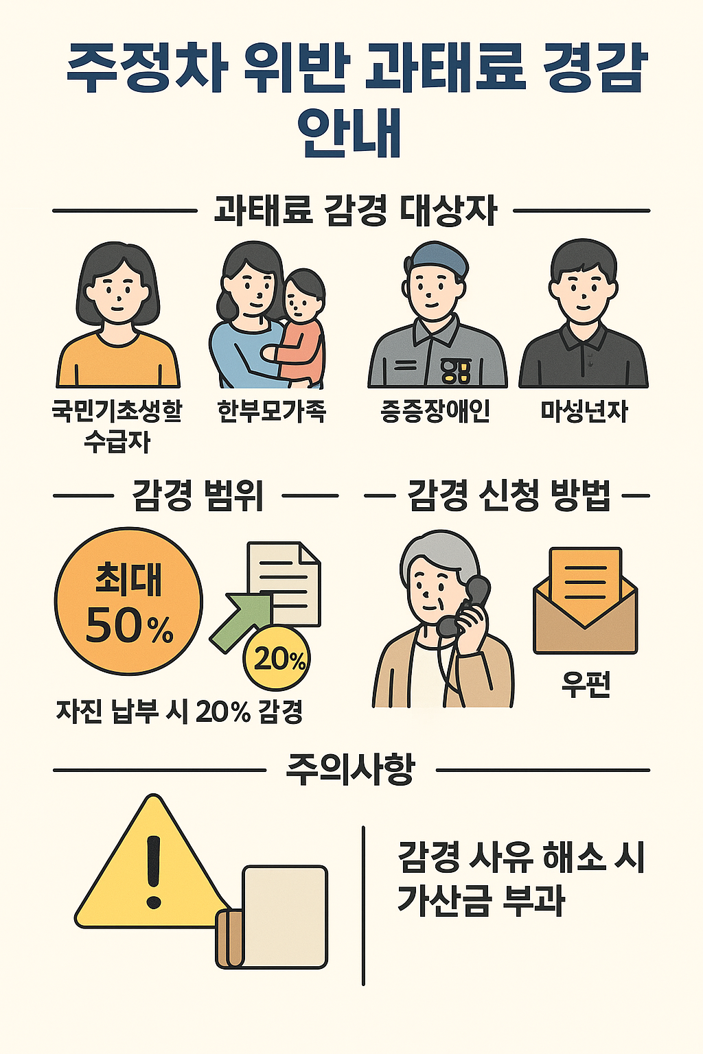 → 과태료가 가중부과됩니다(오전 8시~오후 8시 단속 시). - 국민기초생활수급자, 한부모가족, 장애인 등