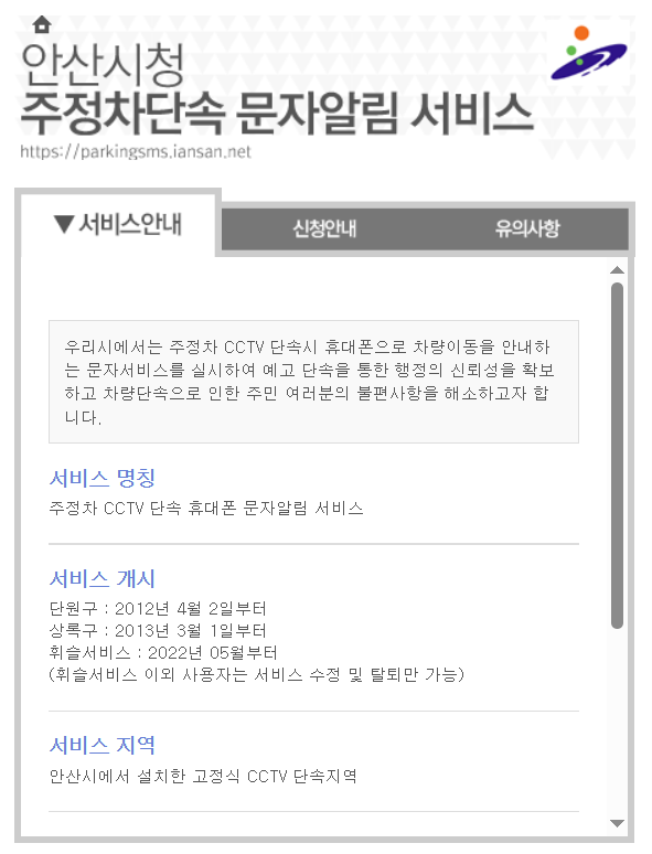 안산시에서는 주정차 단속 알림 서비스를 운영하고 있습니다.
