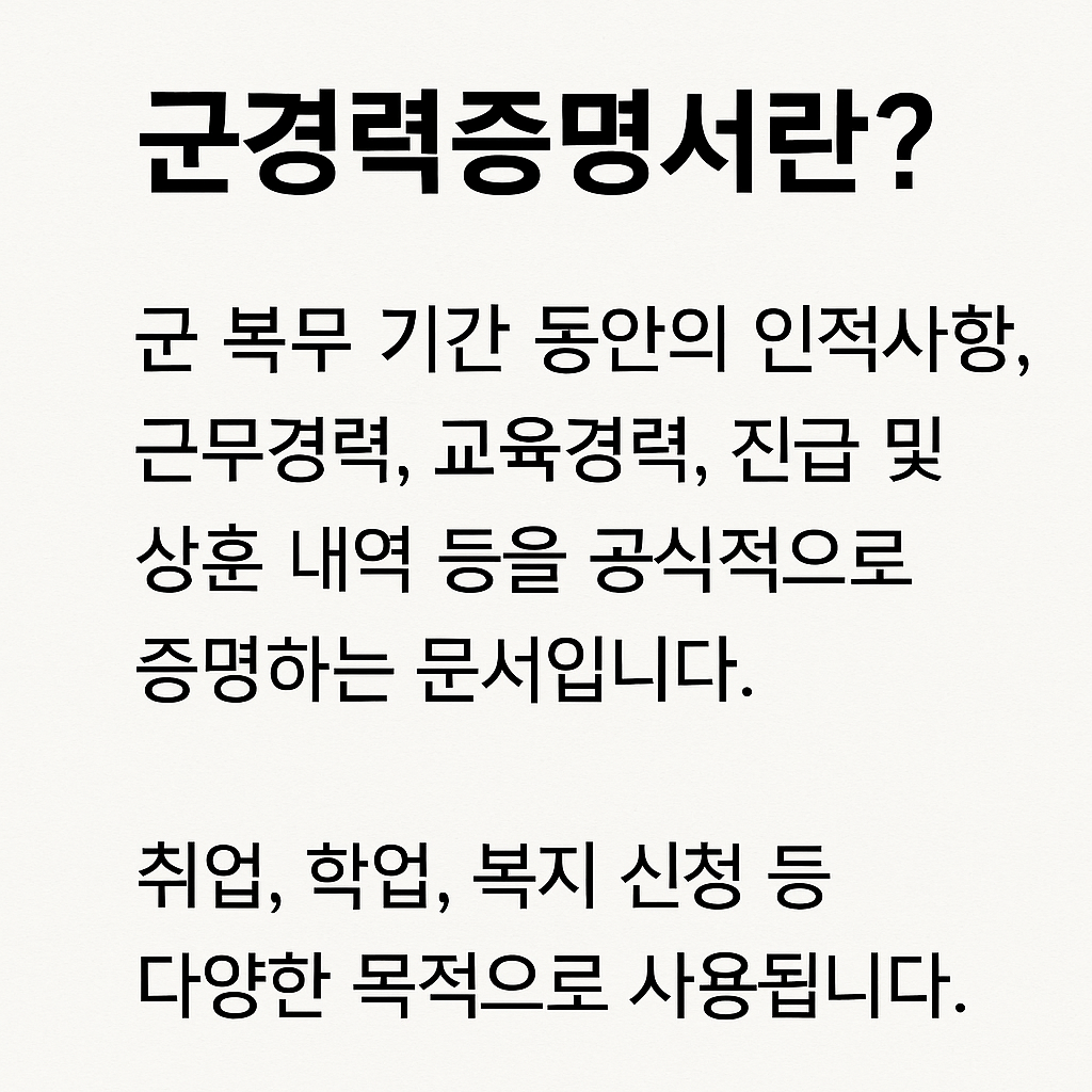 군 복무를 마친 분들이라면, 취업이나 각종 복지 신청, 학업, 심지어 해외 이민 등 다양한 상황에서 ‘군경력증명서’ 제출을 요구받는 경우가 많습니다.