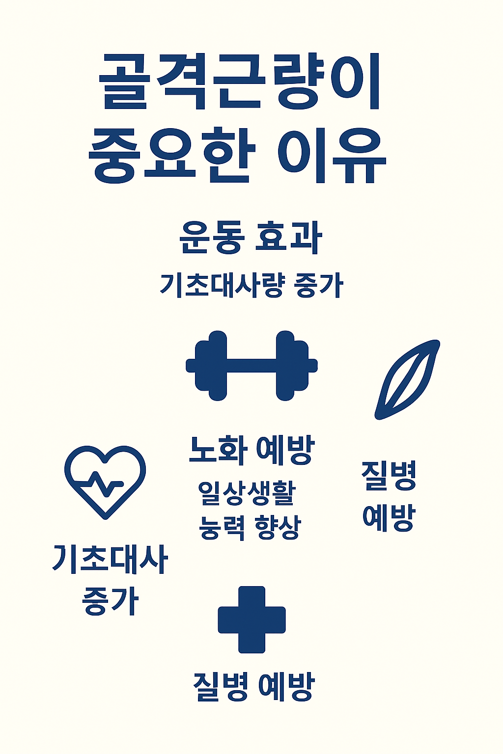 - 기초대사량 증가: 골격근이 많으면 에너지 소비가 늘어나 체중 관리에 유리합니다.