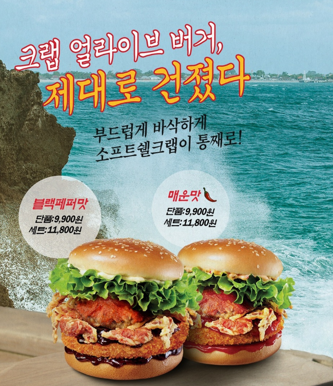 특히 ‘크랩 얼라이브 버거’와 ‘오징어 얼라이브 버거’가 큰 인기를 끌고 있습니다.