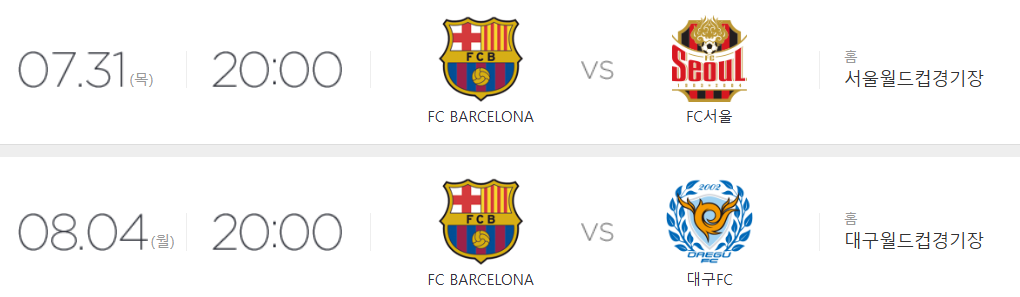 - 서울 경기: 7월 31일(목) 서울월드컵경기장